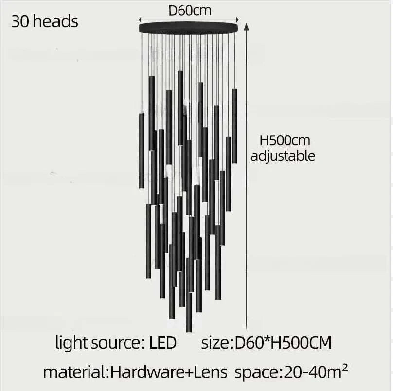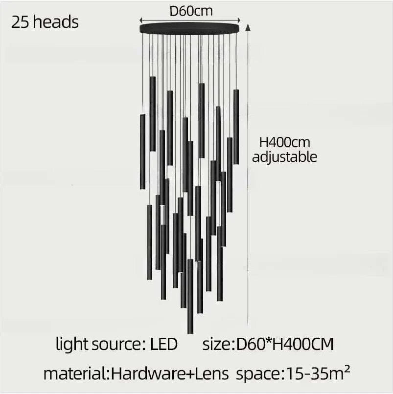 Step into rays of opulent light with our ‘Ethereal Ascent’ Floating Symphony Staircase Chandelier. This architectural marvel is a testament to modern design, blending sleek black pendants in an array from 1 to 35, allowing you to craft a visual symphony tailored to your space.
